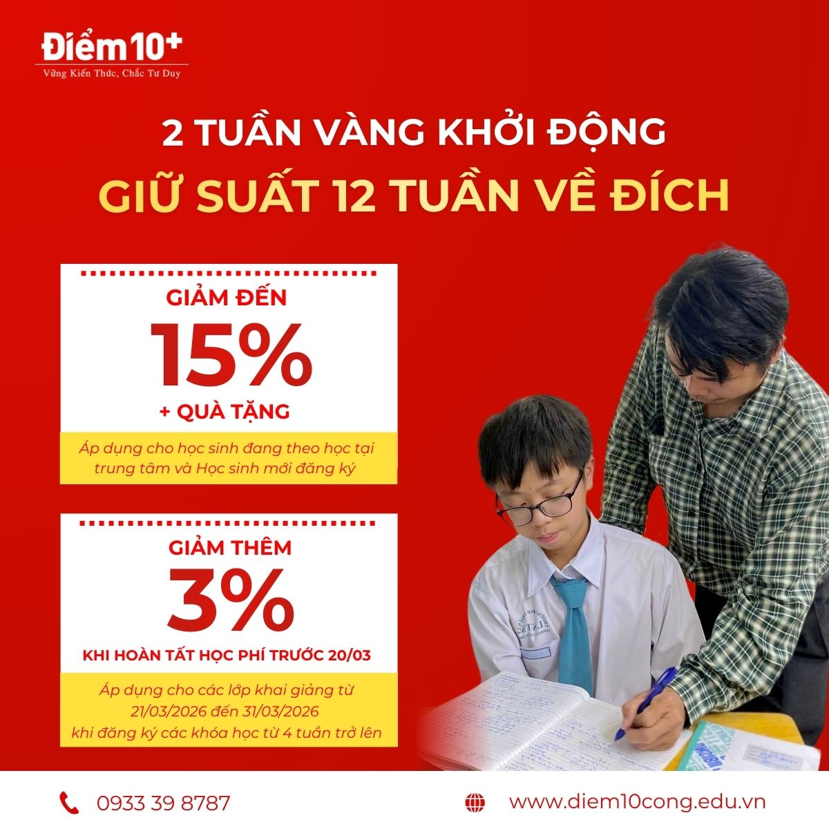2 tuần vàng khởi động - Giữ suất 12 tuần về đích cùng Điểm 10+