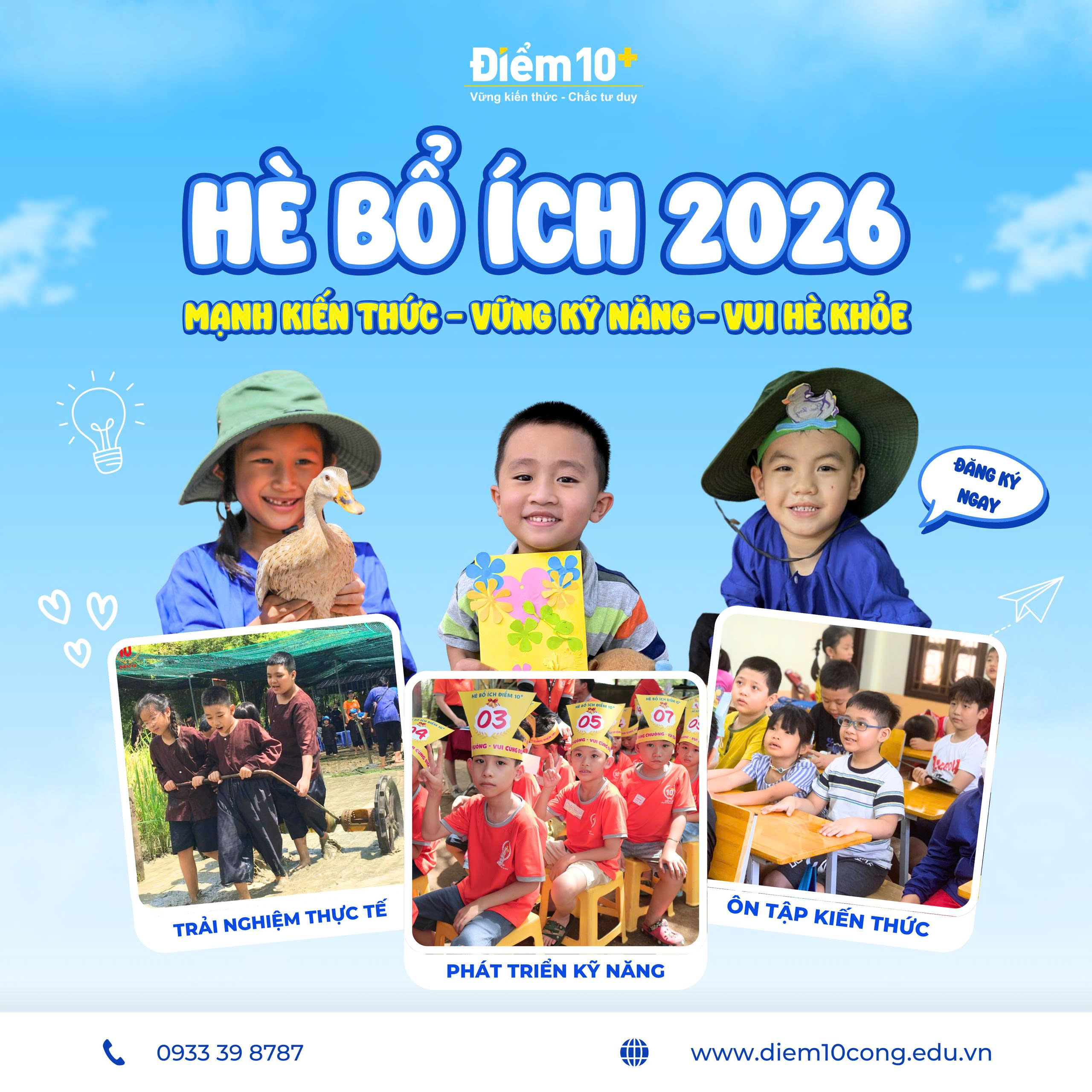 Hiện nay, chương trình Hè Bổ Ích 2026 tại Điểm 10+ đang mở đăng ký sớm.