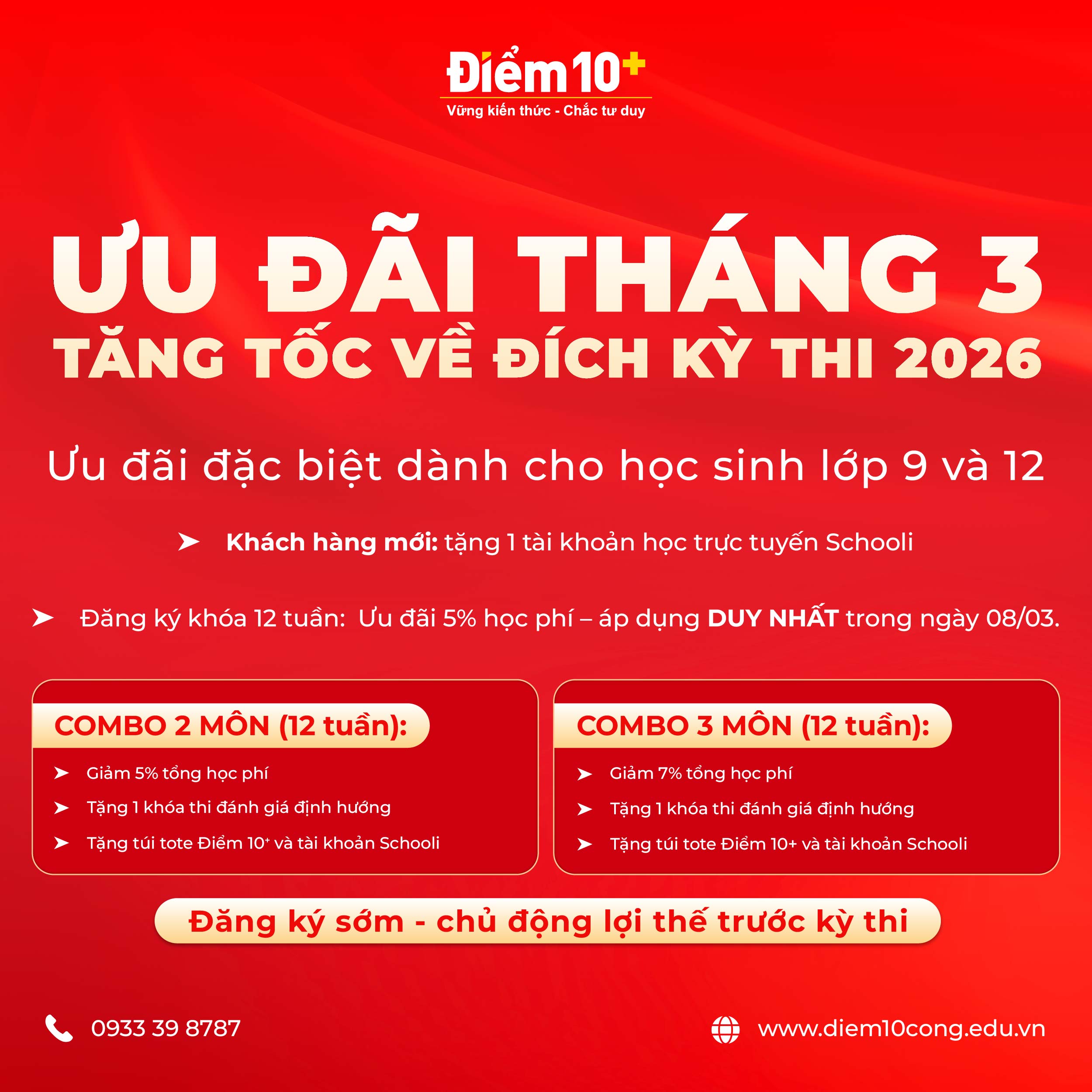 Ưu đãi tháng 03/2026 dành riêng cho khối 9 &12 tại Điểm 10+ có gì đặc biệt?